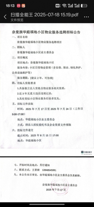 奈曼旗華庭福地小區(qū)物業(yè)招標(biāo)公告
