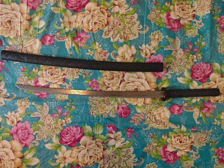 低價(jià)出售九成新武士刀,未開刃,車載擺件工藝品,全長102cm,刃長67cm,柄長25cm,重約1kg。55元有意者直接打電話